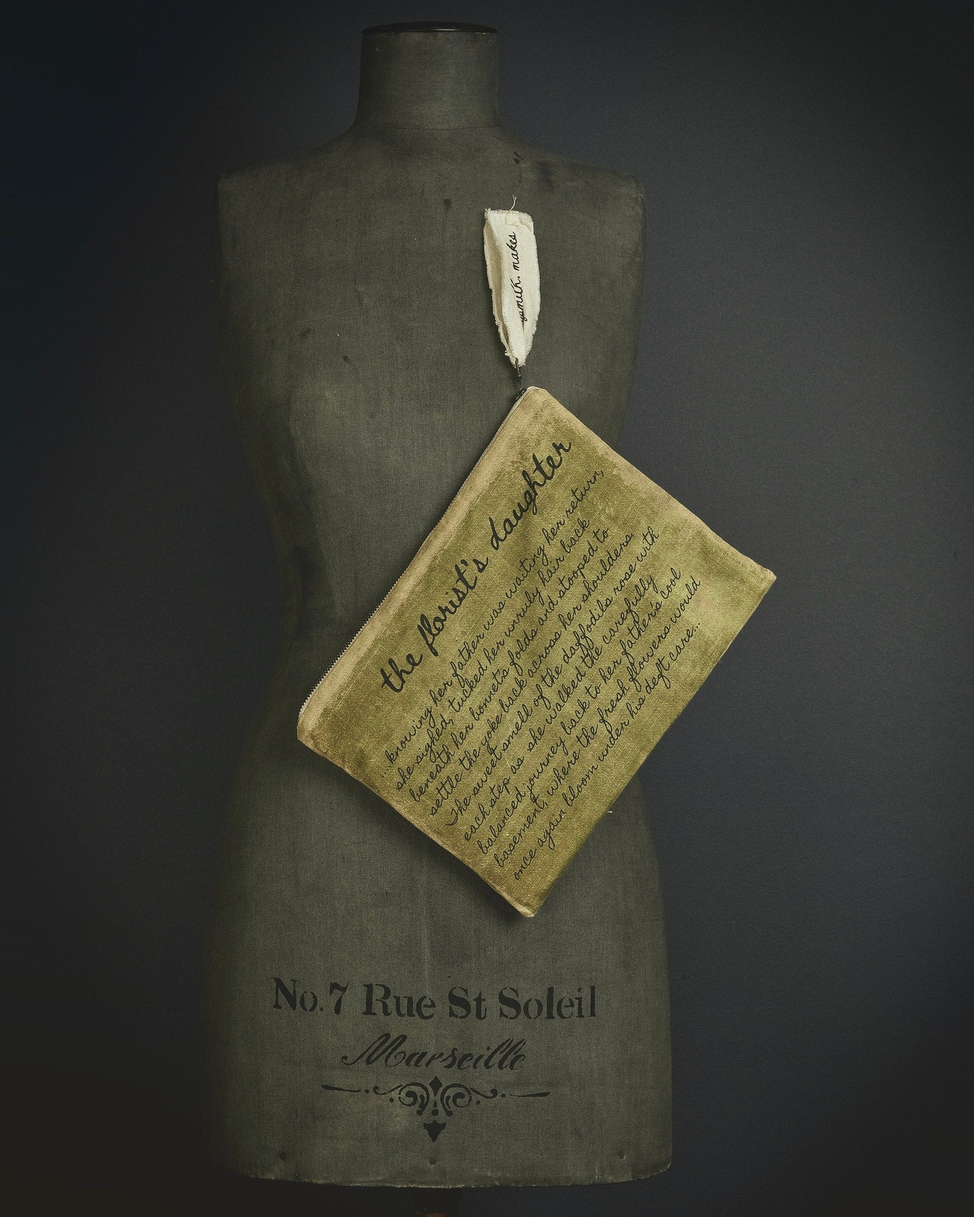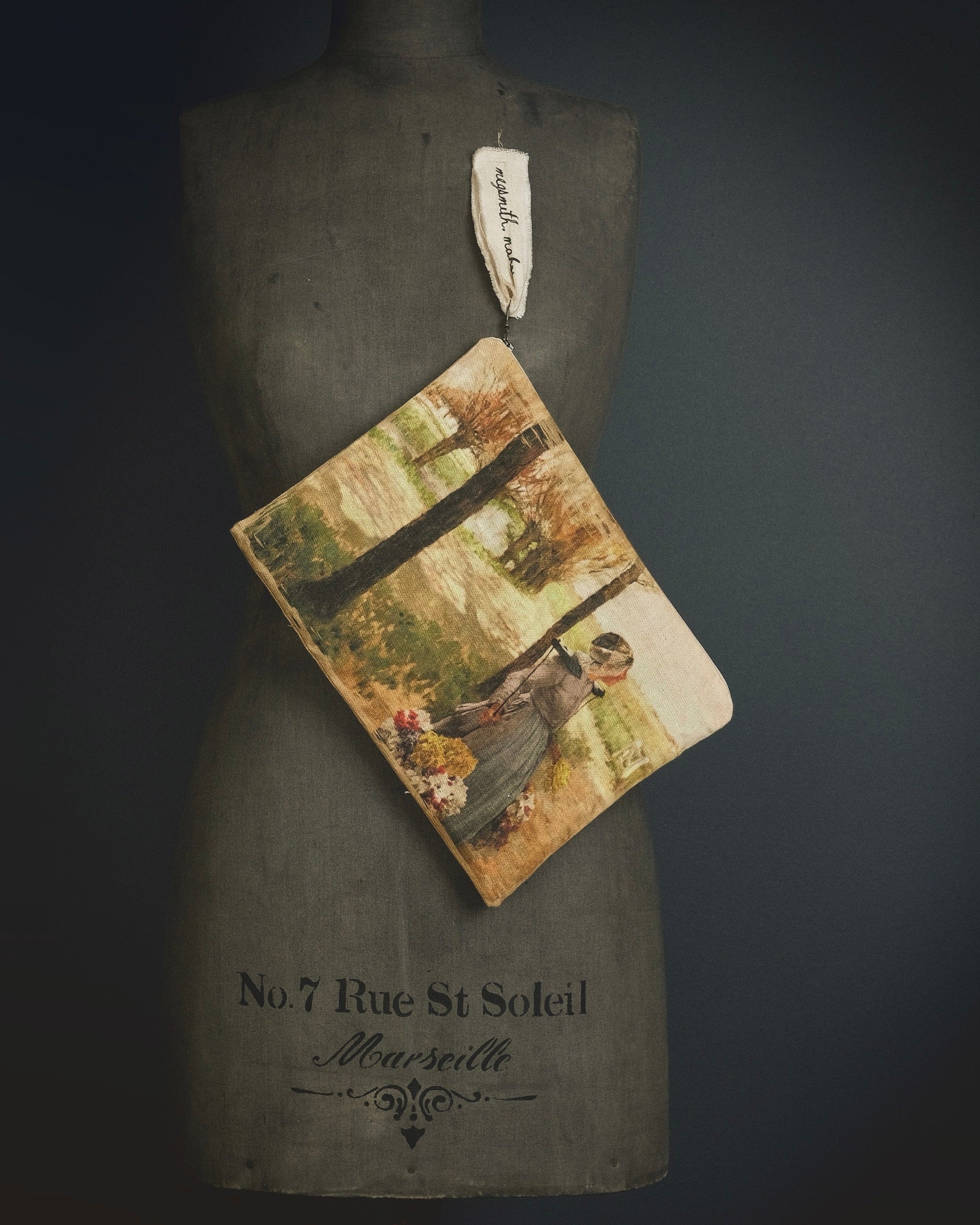 Carry a beautiful piece of history with you. This limited edition cotton-linen clutch features a 19th-century botanical artwork on one side and a vignette of the life of a florist's daughter on the other. Lined with linen and finished with an antique brass zip, this clutch is both romantic and functional. Perfect for adding a touch of Victorian-inspired elegance to your outfit. Matching boxy top sold separately.