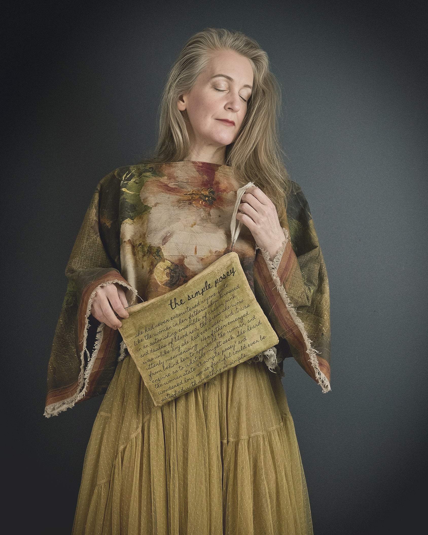 "...she had never encountered anyone quite like the woman who was browsing her fatherβs shop. Dressed in an astonishingly unique ensemble of varying hues of cream, pink and dashes of blood red, her thickly layered skirts flared dramatically from the waist, and fanned out behind her in a sweeping tail of tightly ruffled changeable silk trimmed with finely detailed lace. The bodice hugged her shapely figure, and was adorned with two rows of perfectly petite fabric covered buttons highlighting the central bodice panel. The sleeves of her bodice were gathered at the shoulder, to then gracefully taper down to narrow at her wrists and further accentuate her corseted waist. The dress was unlike any she had ever seen, and it was utterly mesmerising. Her father emerged from behind her to approach the woman, and enquire as to what services she might be seeking. She heard the woman mention βA simple poseyβ and wondered how someone so extraordinary could ever be satisfied with simpleβ¦"